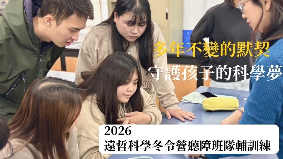 本會每年固定與遠哲科學教育基金會合作,為其舉辦的聽障班提供專業支援,至今已記不清究竟是第幾個年頭。今年,我們的再次與彰師大特教系的小老師們相遇。這群具備特教背景的大學生,是未來教育現場的種子,而我們的任務則是透過行前培訓,確保每一位孩子都能在充滿支持的環境下,享受探索科學的樂趣。