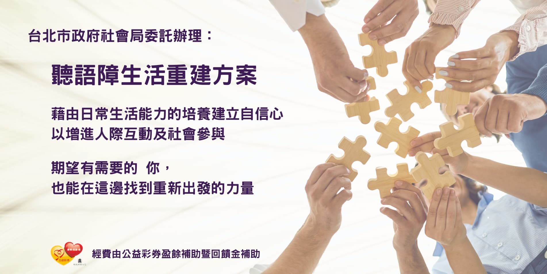 我們認為聽覺健康是一輩子的事,專業團隊唯有遵循大腦的運作機制,才能有效解決聽健大小事。 近30年的專業追求,我們看到了社會的需要,也有能力協助這群全年齡層聽損者增進和改善聽覺功能、社會適應、職場和諧、老年失能等問題。現在,臺北市政府社會局委託我們辦理《身心障礙者生活重建/訓練/支援及家庭支持服務(聽覺及聲音機能類)》方案,積極協助聽損者建立自我價值、促進身心靈平衡發展並提升社會適應能力。