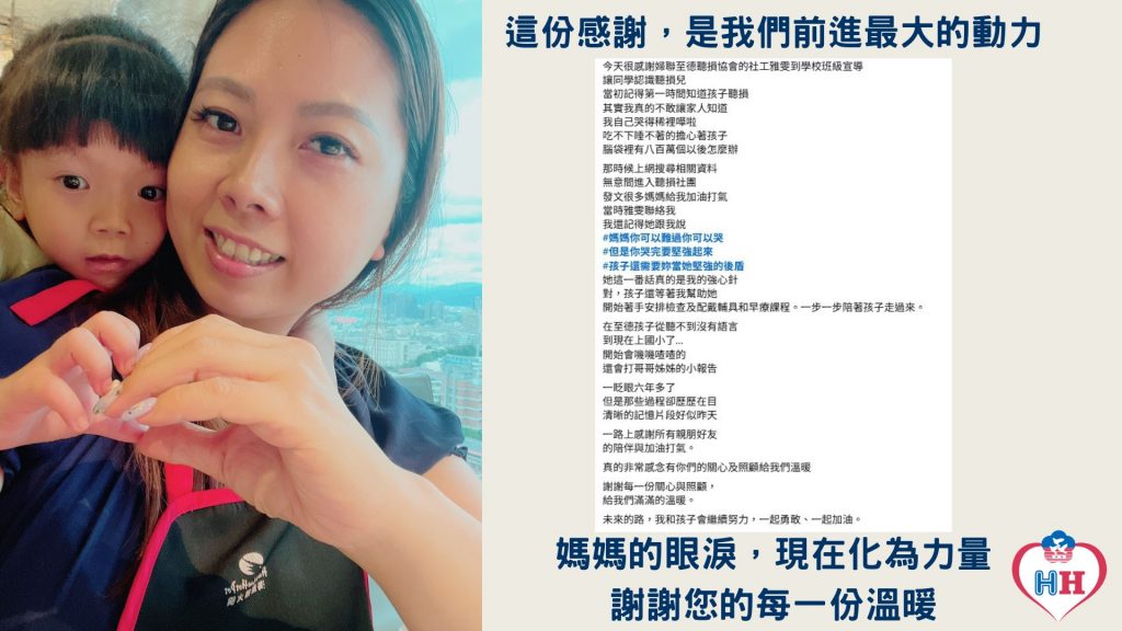 她在網路上無助搜尋,偶然進入聽損社團發文求助。一群陌生媽媽的加油打氣,成了黑暗中的第一道光。我們的社工雅雯,更主動聯繫了她——