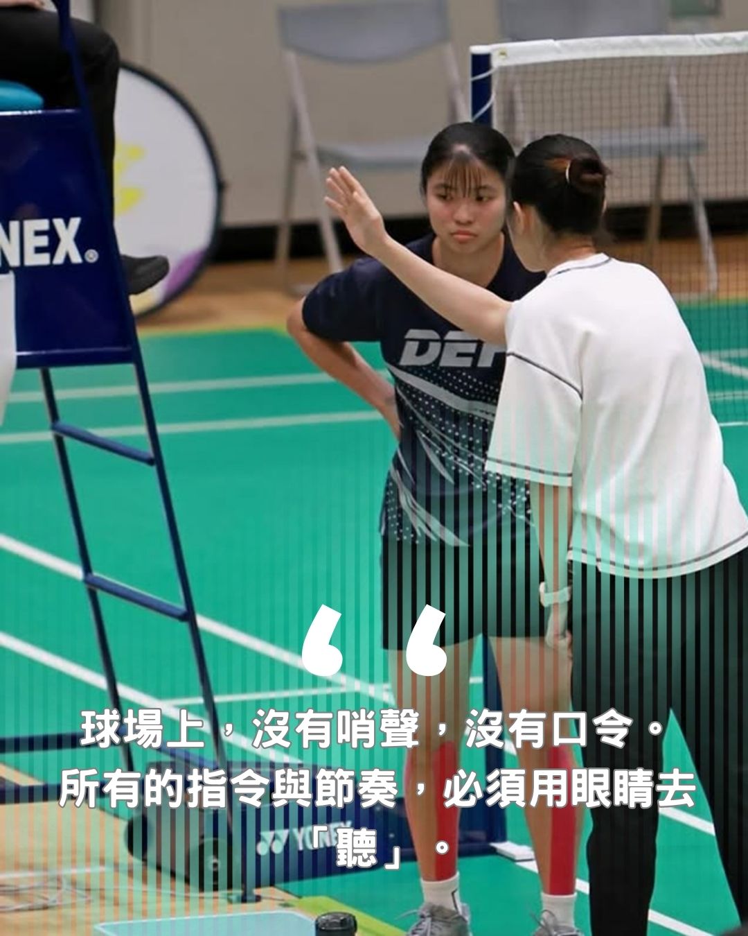 比賽時,選手無法配戴助聽器,她聽不見哨聲、聽不見口令,卻僅憑眼神、身體節奏與白板上的指令,就能掌握整場比賽的脈動。這份獨特的「超能力」,讓她在國際舞台上,開始發光。