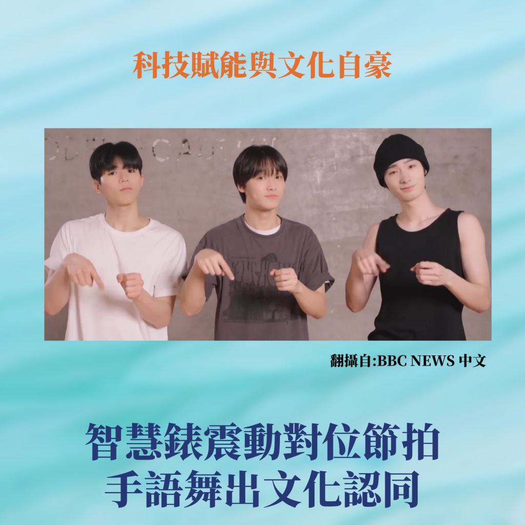 Big Ocean最動人之處,在於他們不以聽損為需要隱藏的身份,而是將其轉化為表演語言。他們將 #手語 融入編舞,讓手語不再是單純的溝通工具,而是舞蹈中充滿力量與美感的視覺元素。他們用自己的方式向世界宣告:手語,也是一種藝術;聽損者的文化認同,值得被看見、被欣賞。