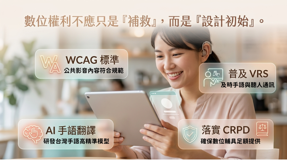 面對這些數位浪潮中的挑戰,我們期許透過《CRPD 施行法》的國內法化,為聽障朋友建構三道防線: